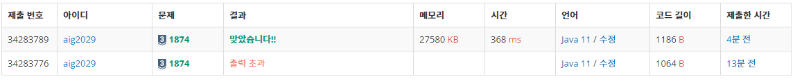 이런 종류의 문제의 '출력 초과'는 '답이 없음'을 출력해야 하는데 답이 있는 것 처럼 출력하려고 했기 때문입니다.