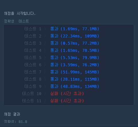 자꾸 테케10~11 시간초과남